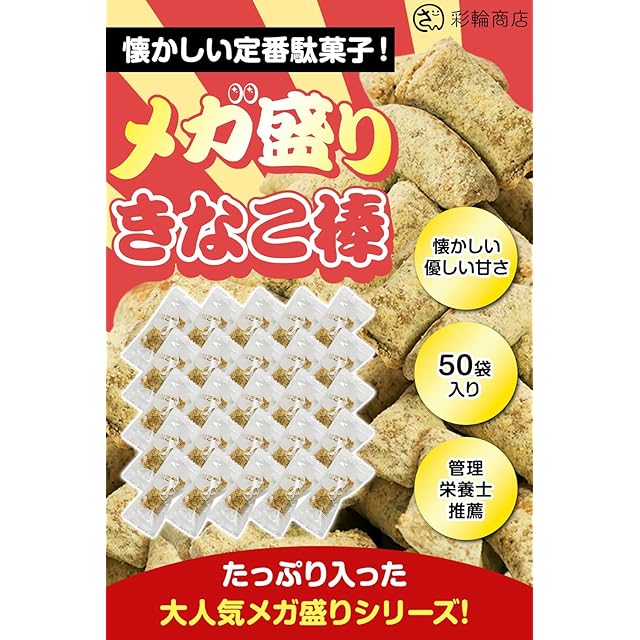 商品名:【管理栄養士推薦】 彩輪商店 きなこ棒 メガ盛り 個包装 国産 きな粉 駄菓子 【老舗きなこ飴専門メーカー監修】 きなこ お菓子 無添加 きな粉飴 業務用 50個 大容量