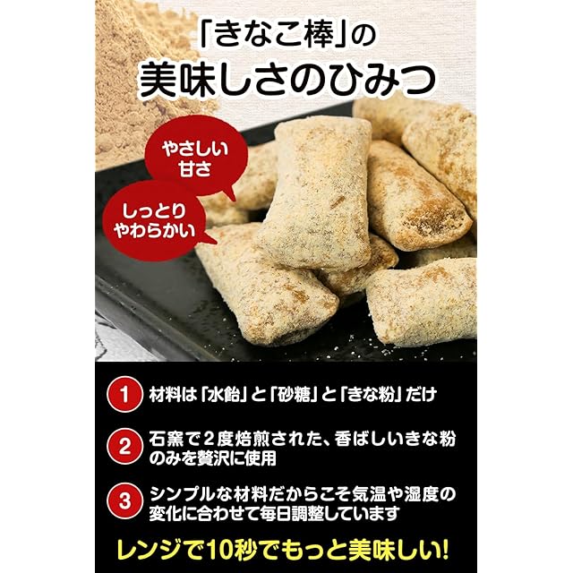 ✅【きなこ飴の美味しさの理由】<こだわり1>材料は「水飴」と「砂糖」と「きな粉」だけ。<こだわり2>石窯で2度焙煎された、香ばしいきな粉のみを贅沢に使用。<こだわり3>シンプルな材料だからこそ気温や湿度の変化に合わせて毎日調整しています。
