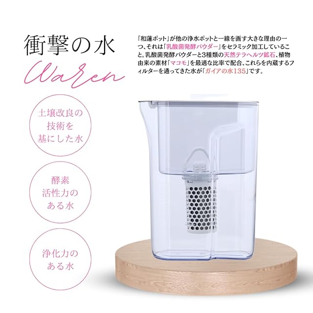 商品名:ガイアの水 浄水器 和蓮ポット ガイアの水135 カートリッジ付き water filter PFOS/PFOA除去対応 BPAフリー (ホワイト) 【正規代理店】