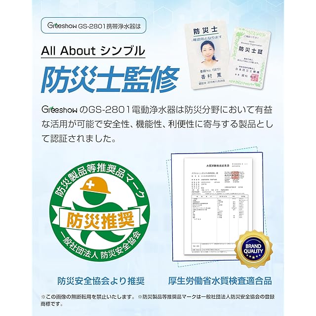 GS-2801電動浄水器の交換用フィルター:このカートリッジは、Greeshow 2801携帯浄水器に適用します。ブラックの内蔵フィルターと外付けフィルターががあります。GS-2801携帯浄水器は・防災必要性・安全性・機能性において、「一般社団法人防災安全協会」での評点をクリアし認証されました。対応電動式携帯浄水器 ASIN:B0BFHDLPYM