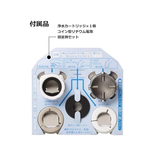 本体サイズ:高さ7.5×幅12.5×奥行11cm/0.31kg・付属品:浄水カートリッジ1個,固定具セット・原産国:日本・浄水器設置形態:直結型
