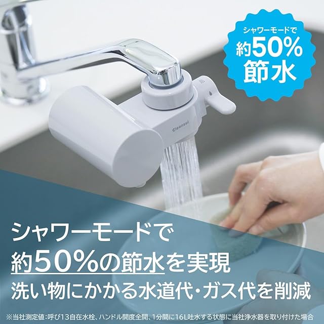 【節水】シャワーモードで約50パーセント節水。従来のクリンスイ製品より節水率UP。節約志向の方にオススメ。【キレイノズル】浄水出口がカートリッジと一体のため、交換の度に新しくなり衛生的にお使いいただけます。【キッチンになじむグレーボディー】従来のホワイトからキッチンに馴染む色合いのグレーに変更。