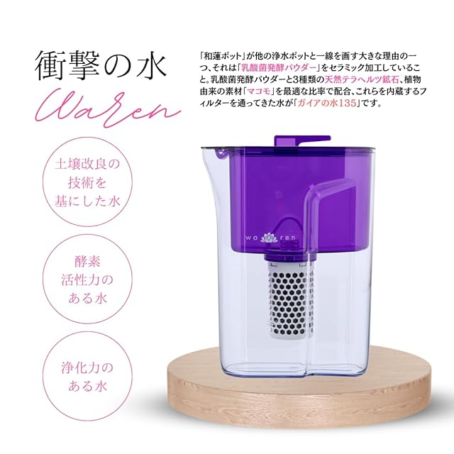商品名:ガイアの水 浄水器 和蓮ポット ガイアの水135 カートリッジ付き water filter PFOS/PFOA除去対応 BPAフリー (パープル) 【正規代理店】