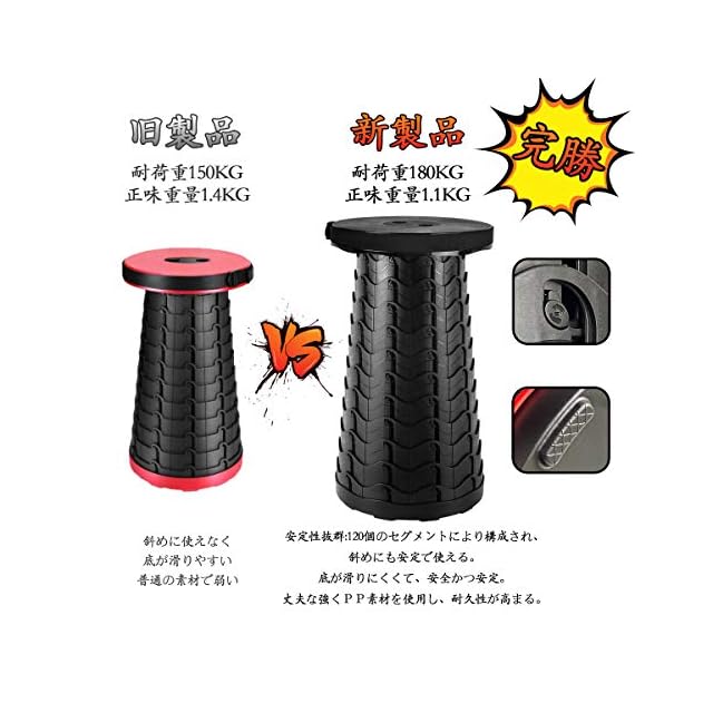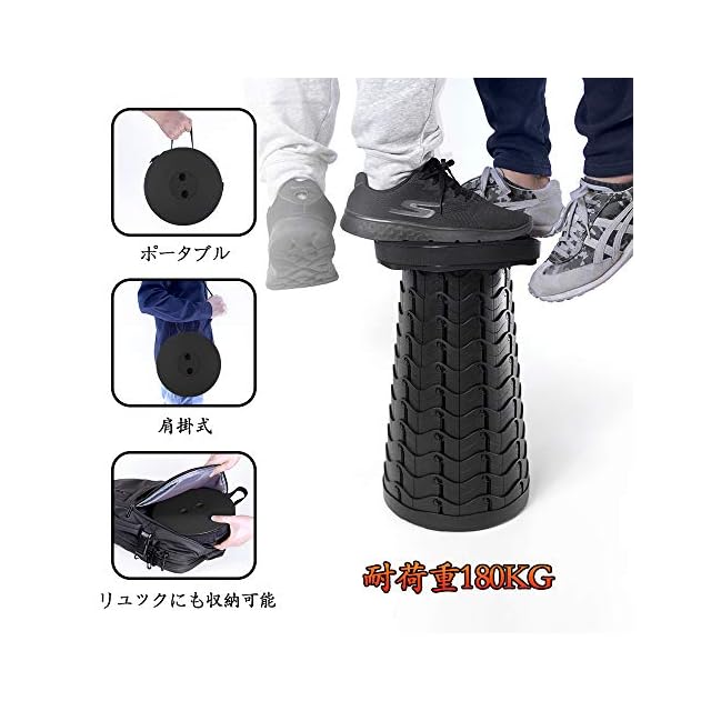 【使い方簡単、持ち運び便利】使い方簡単:少しひねりを入れながら両端を引くだけでスツールが完成。収納は逆方向に少しひねりを入れながら両端を押すだけで収納可能。また、ストラップ付きで、手に持ってでも、肩に掛けても、便利です。リュックにも収納可能です。