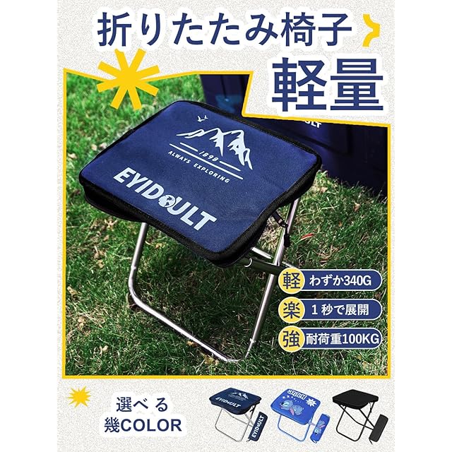 EYIDOULT 折りたたみ椅子 コンパクト 軽量 アルミ合金 持ち運び アウトドアチェア 収納袋一体型 便利 携帯いす 日本語取扱説明書付き 運動会 お釣り キャンプ 登山 試合観戦 万博(ダークブルー)