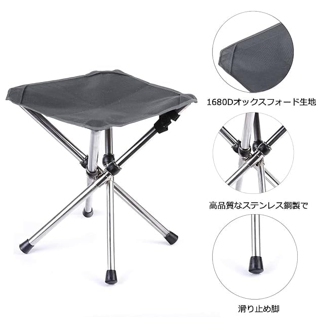 【製品仕様】カラー:ブラック;サイズ:組立時:高さ31×縦28×幅28cm 収納時:26×6×6cm 重量:約490g 材質:フレーム:ステンレス鋼/座面生地:1680Dオックスフォード生地 耐荷重:静止耐荷重約100kg