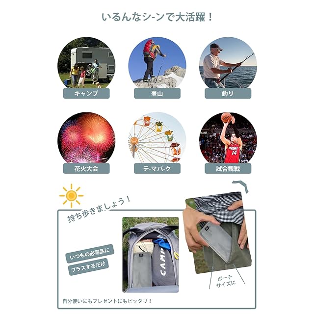 【多用途で幅広いシーンに対応】キャンプ、釣り、ハイキング、お花見、バーベキュー、運動会、登山、公園、レジャー、ピクニック、行列の待機、観戦用