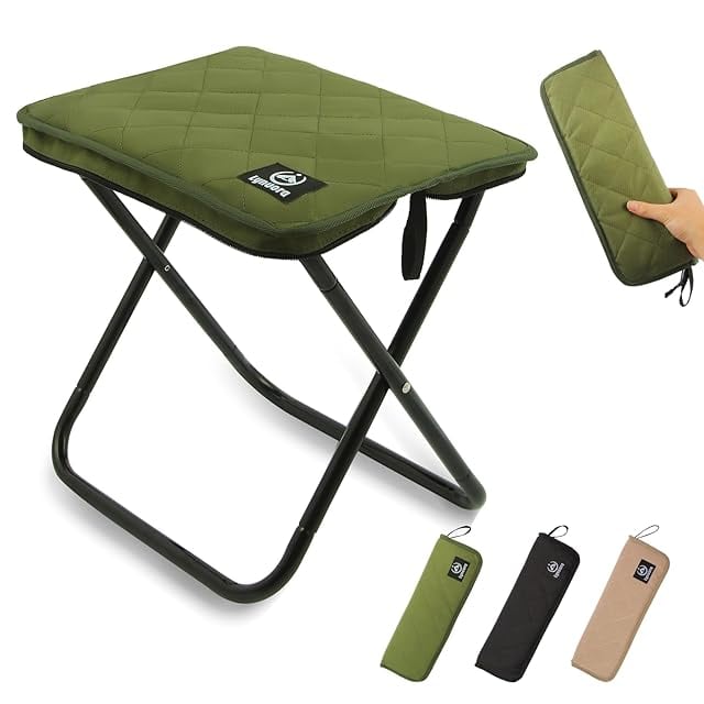 Lynvora 折りたたみ椅子 ミリタリーグリーン 2025年持ち運びスツール - 座面+41%拡大(35.5×26.5cm) 耐荷重120kg 軽量445g 座高34cm 外径15mmアルミ合金パイプ 耐久性強化設計 コンパクト収納 アウトドアキャンプ/家庭/待时间
