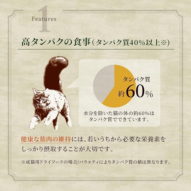 愛猫が本能的に求める高タンパクで穀物を使わない食事を、高品質な厳選自然素材で実現。