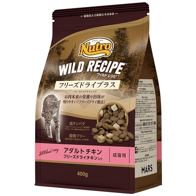 Nutro ワイルドレシピ 成猫用 グレインフリー フリーズドライプラス チキン 400g ドライフード 総合栄養食 アダルト キャットフード 猫 お試し 穀物フリー 高タンパク 厳選自然素材 香料・着色料 無添加 ニュートロ