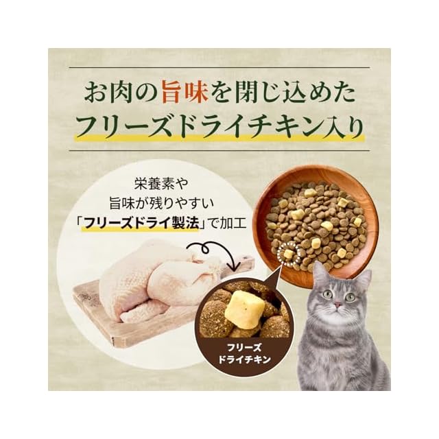 お肉のうまみを閉じ込めたフリーズドライチキンをプラスし、抜群のおいしさに仕上げました。