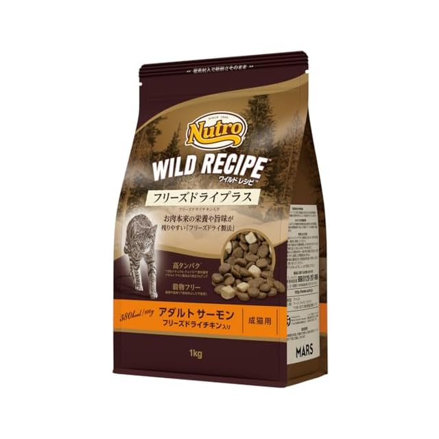Nutro ワイルドレシピ 成猫用 グレインフリー フリーズドライプラス サーモン 1kg ドライフード 総合栄養食 アダルト キャットフード 猫 穀物フリー 高タンパク 厳選自然素材 香料・着色料 無添加 ニュートロ