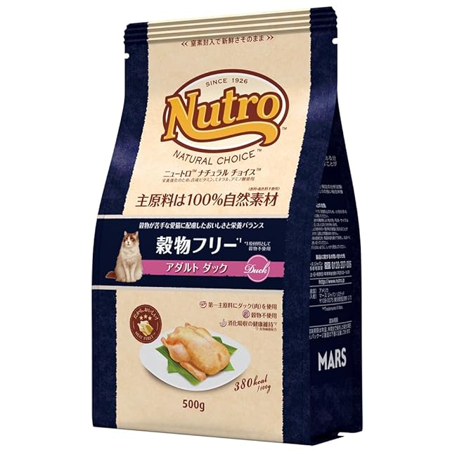 商品名:Nutro ナチュラルチョイス 成猫用 穀物フリー アダルト ダック 500g ドライフード 総合栄養食 1歳以上 キャットフード 猫 お試し グレインフリー 厳選自然素材 消化吸収の健康維持 香料・着色料 無添加 ニュートロ