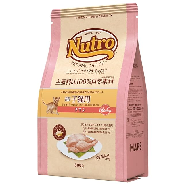 商品名:Nutro ナチュラルチョイス 子ねこ用 室内猫用 チキン 500g ドライフード ふやけやすい粒 総合栄養食 子猫用 キトン 仔猫用 妊娠期・授乳期用 キャットフード 猫 お試し 厳選自然素材 発育をサポート 香料・着色料 無添加 ニュートロ