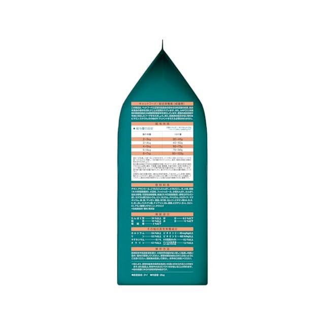 成分:たんぱく質:34%以上、脂質:14%以上、粗繊維:3%以下、灰分8.5%以下、水分12%以下