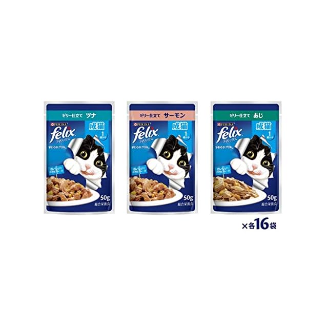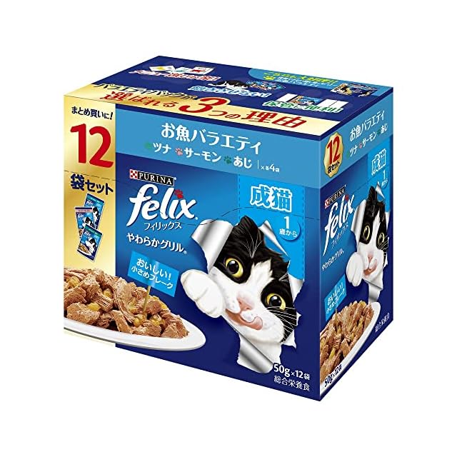 商品名:【.co.jp限定】フィリックス パウチ やわらかグリル 成猫 お魚バラエティ(ツナ・サーモン・あじ) 50gx48袋入り(12袋x4箱)