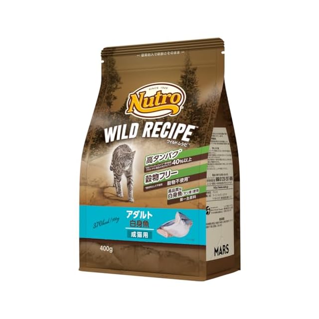 Nutro ワイルドレシピ 成猫用 グレインフリー アダルト 白身魚 400g ドライフード 総合栄養食 キャットフード 猫 お試し 穀物フリー 高タンパク 厳選自然素材 香料・着色料 無添加 ニュートロ