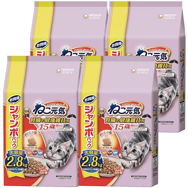 ねこ元気 キャットフード ドライ 腎臓の健康維持用 シニア 15歳頃から まぐろ・かつお・白身魚入り 11.2kg(2.8kg×4) 国産 ユニチャーム 【まとめ買い】【ジャンボパック】