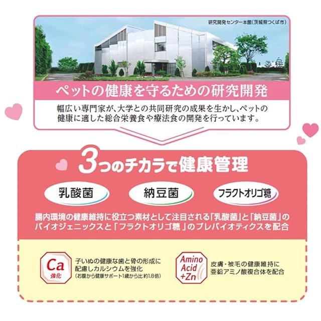 成分:たんぱく質27.5%以上 脂質12.0%以上 粗繊維4.5%以下 灰分10.5%以下 水分10.0%以下