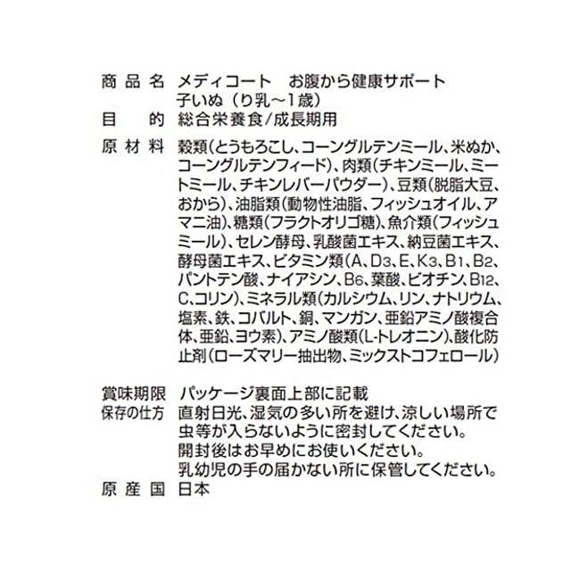 商品名:メディコート お腹から健康サポート 子いぬ(り乳~1歳)【国産/小分け】 900g(225g×4)