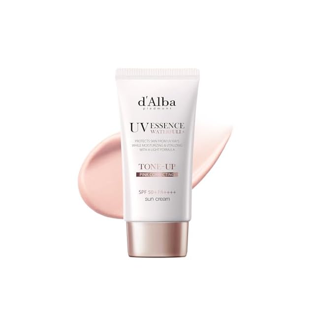 【d'Alba公式】トーンアップ UVエッセンス サンクリーム - SPF50+/PA++++ 化粧下地 日焼け止め 美容液 汗と水に強い ウォータープルーフ イージーウォッシャブル 一度に落とせる ファンデフリー 紫外線 敏感肌 乾燥肌 低刺激 顔 全身用 ヴィーガン (ピンク 50ml)