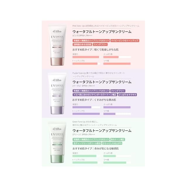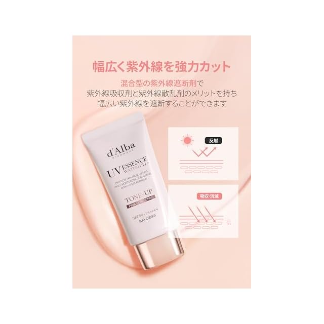 商品名:【d'Alba公式】トーンアップ UVエッセンス サンクリーム - SPF50+/PA++++ 化粧下地 日焼け止め 美容液 汗と水に強い ウォータープルーフ イージーウォッシャブル 一度に落とせる ファンデフリー 紫外線 敏感肌 乾燥肌 低刺激 顔 全身用 ヴィーガン (ピンク 50ml)
