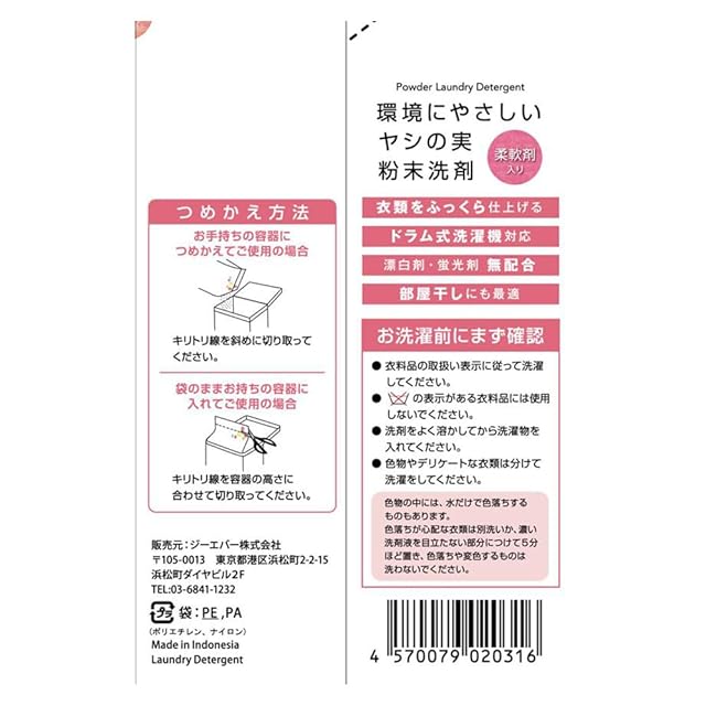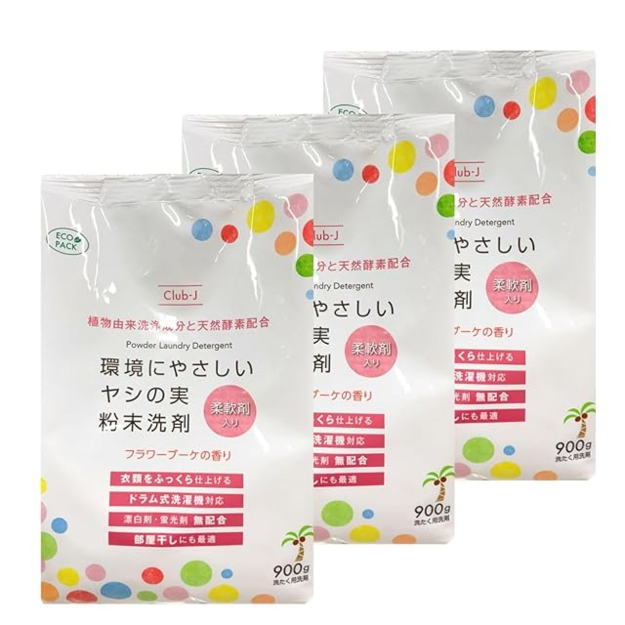 商品名:【.co.jp限定】 BULK LIFE(バルクライフ) Club-J 環境にやさしい ヤシの実 粉末 洗剤 柔軟剤 入り 900g × 3個