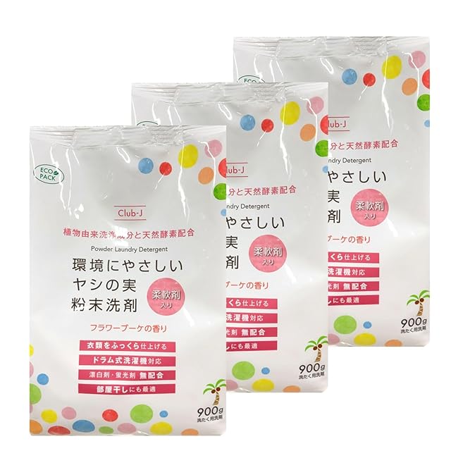 【.co.jp限定】 BULK LIFE(バルクライフ) Club-J 環境にやさしい ヤシの実 粉末 洗剤 柔軟剤 入り 900g × 3個