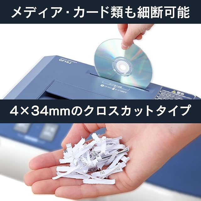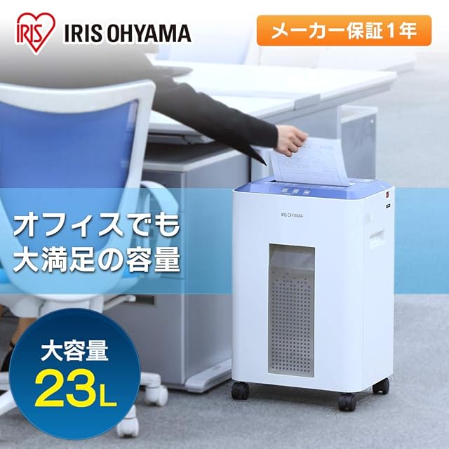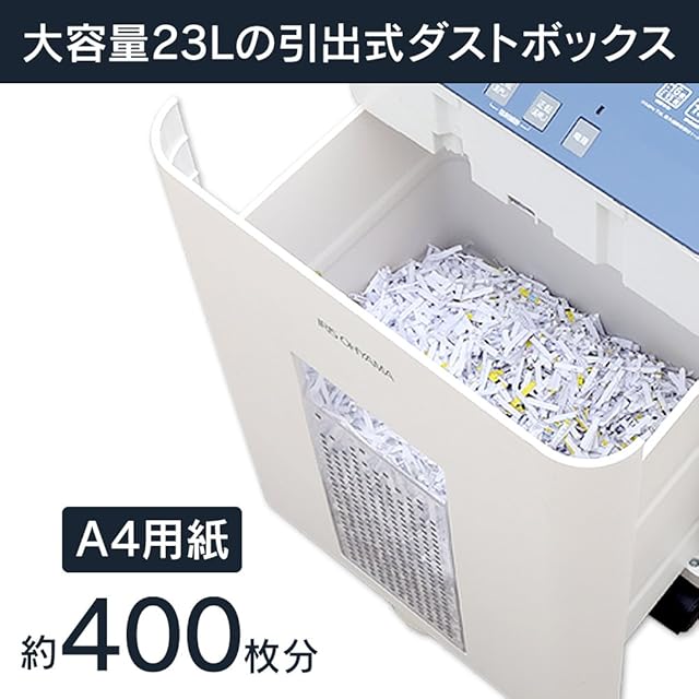 商品名:アイリスオーヤマ シュレッダー 業務用 静音 高速 細断枚数16枚 クロスカット ホチキス対応 連続使用10分 CD/DVD/カード対応 ダストボックス23L A4/400枚収容 OF16J ブルー
