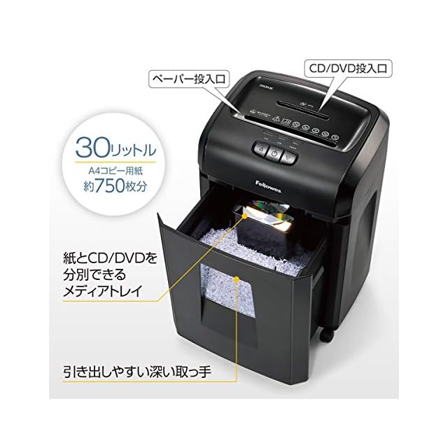 【細断クズ収容】A4紙750枚分(30リットル) *推奨ゴミ袋サイズ45リットル【連続使用】30分 【電源コード長さ】1.2m 【キャスター】あり