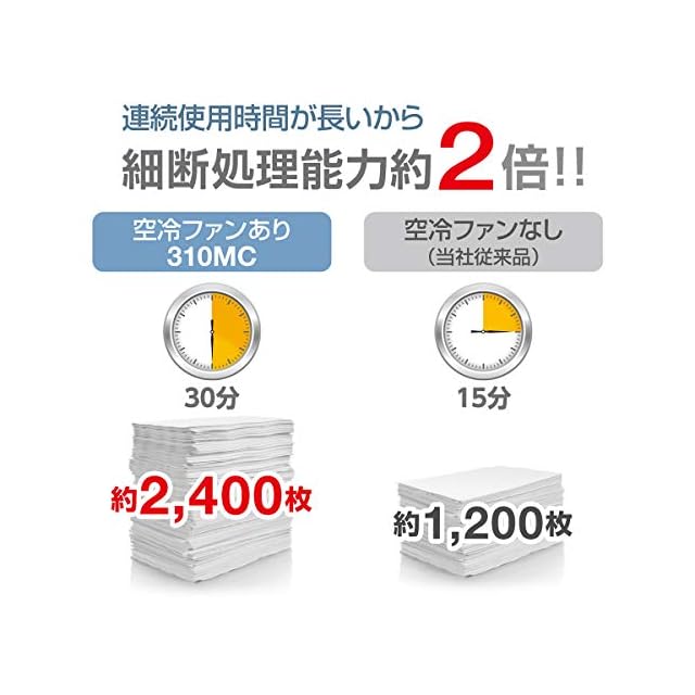 数人で共有するのに最適なオフィス向けモデル。個人情報や重要書類の処理に最適・安心のマイクロカット。モーターをファンで冷却することで30分の長時間使用が可能。