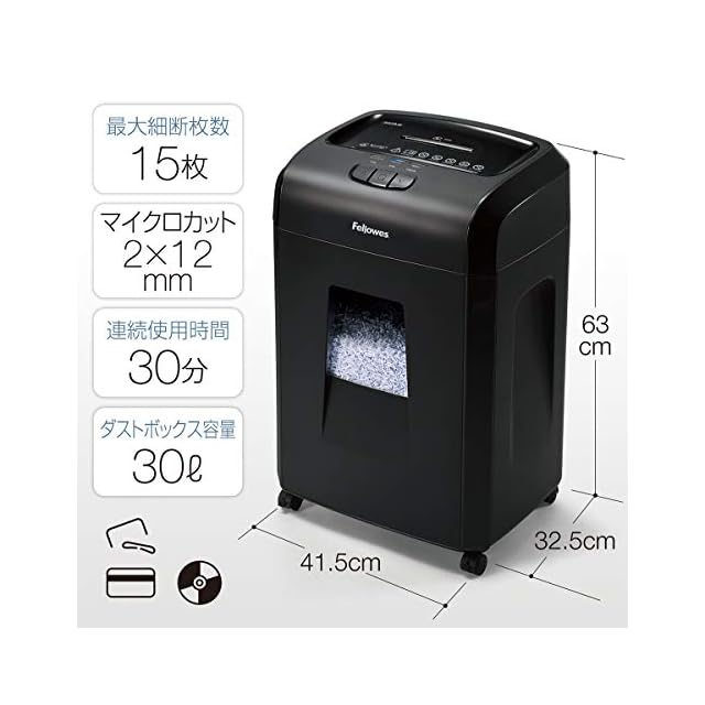 商品名:フェローズ シュレッダー 業務用 電動 15枚細断 マイクロカット 機密情報の処理に最適 連続使用時間が長い30分 310MC-R ブラック