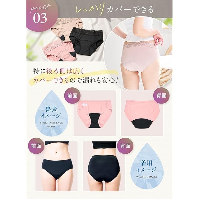 商品名:[&COTTON] 吸水ショーツ 25mL吸収 2タイプ(ノーマル、レース) サイズM/L/LL サニタリーショーツ (JP, アルファベット, L, レース, ブラック)