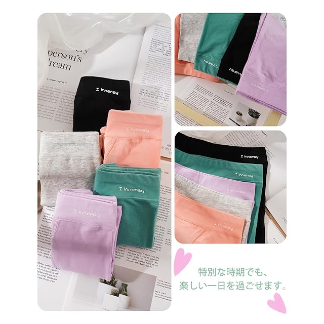 【こだわったデザイン】ボクサータイプのショーツ、鼠蹊部をまったく締め付けなく、ストレスフリーな履き心地です。そして、レギンスに似ている形は、スカートを履くのが好きな女の子に対して、さらに便利になります。特別な時期でも、かわいいスカートを履いて楽しい一日を過ごせます。