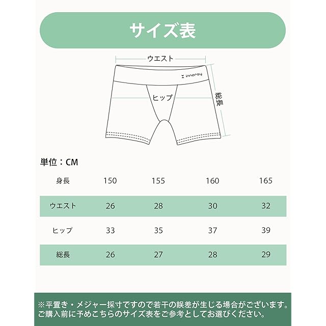 【サイズガイド】ウエストサイズ:150(26cm)、155(28cm)、160(30cm)、165(32cm)ご自分に相応しい一着をお選びください。ご購入前に予めサイズ表をご参考ください。特別な時期のために、3枚セットをご用意しております。量が多い日にナプキンと一緒にお使いください。