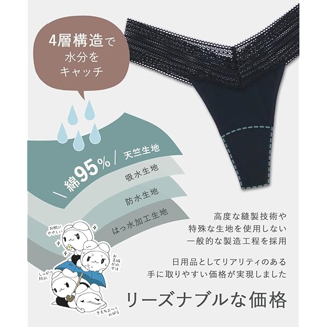 ✅【綿95%で肌への優しさを追求&約7mlの吸収力!】 アクティブに動きたい日でもブルーデイの始まりや終わりかけが心配…という方にぴったりの、軽めの吸収量7mlをご用意。内側は綿95%だからデリケートな肌にもぴったり。4層構造で漏れを防ぎ、なめらか生地で普段遣いショーツに近づけています。ファッションにも響きにくい仕様です。肌に優しいつけ心地をお求めの女性にもおすすめ。