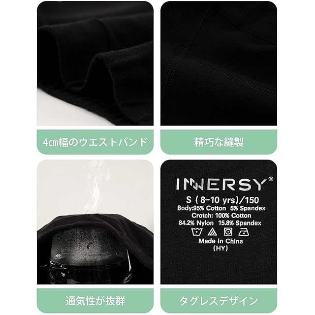 商品名:[INNERSY] サニタリーショーツ 女児 生理用ショーツ 下着 綿 ハイウエスト 女の子 羽根つき対応 吸水ショーツ 3枚セット ジュニア 蒸れない ボクサータイプ ガールズ 可愛い 漏れ防止 昼夜用 150-165(150,3ブラック)