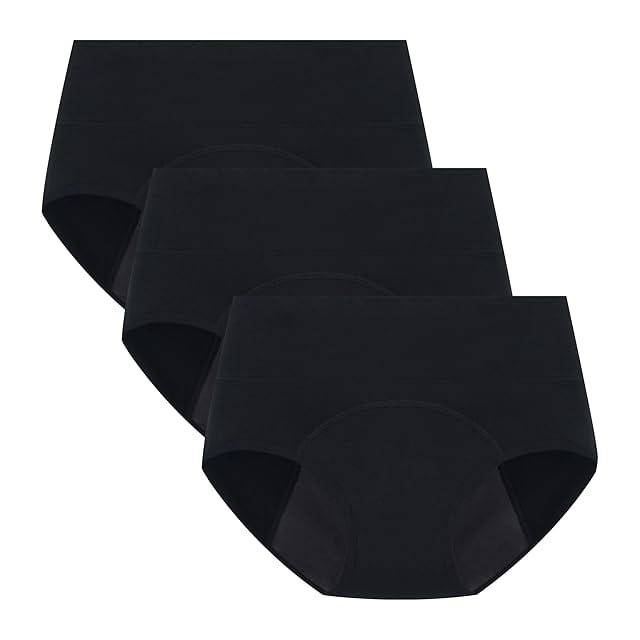 [POPKOK] [ポップコー]サニタリーショーツ レディース 生理用ショーツ 下着 セット 女性用 綿 ハイウエスト 漏れ防止 インナー パンツ 肌着 3枚組(ブラック,LL)