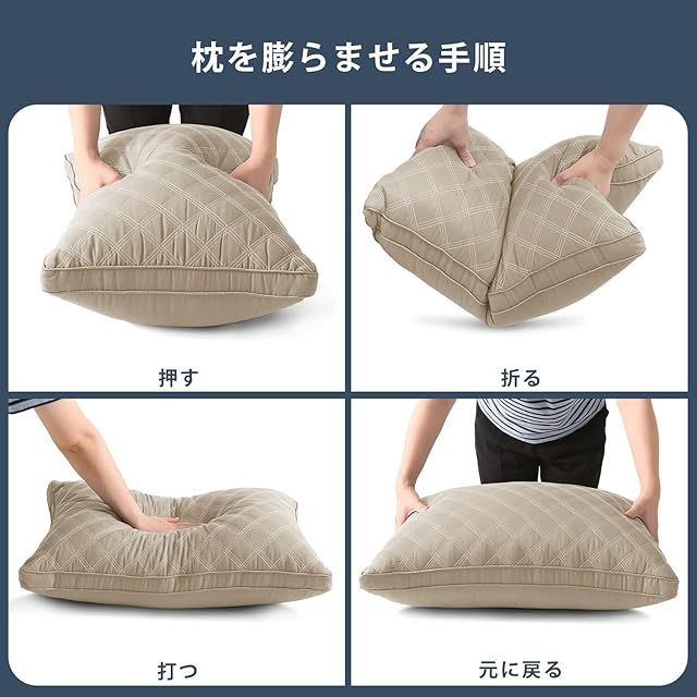 【高反発素材-復元力を持ち】厳選した高弾力の3Dポリエステル素材をボリュームたっぷりに詰め込み、ふっくらとした弾力を持つ同時にふんわり包み込まれる寝心地を実現します。適当な弾力で、頭部をしっかりサポートし、横向き寝・仰向け寝・うつ伏せ寝、お好きな寝姿でぐっすり眠れます。