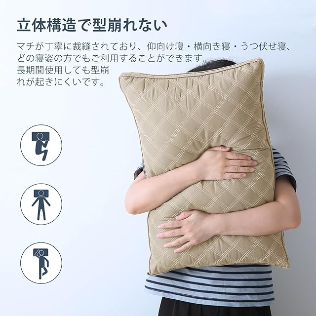 【立体構造-型崩れず】側生地にマチが付いているため、一晩を寝てもすぐに復元でき、へたりにくいです。長期間快適に利用できる枕です。