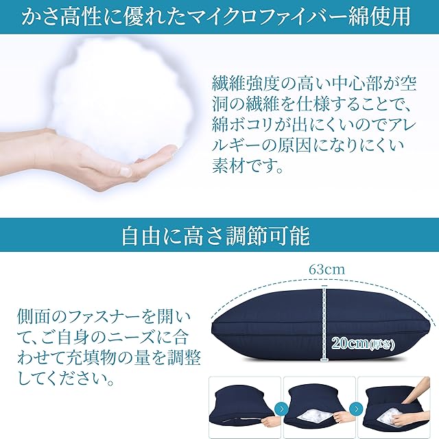 【高さ調整可能】 ファスナーで簡単に高さ調整ができるので、あなたに最適なフィット感を見つけられます。寝る姿勢に合わせてカスタマイズできるので、毎晩最高の眠りを提供します。個々の睡眠スタイルに合わせて調整できるため、より質の高い睡眠を実現します。自分にぴったりの高さを見つけることで、快適な睡眠環境を手軽に整えることができます。