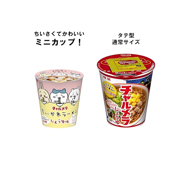 商品名:明星 チャルメラ ちいかわラーメン しょうゆ味[ミニカップ、にっこり「ちいかわなると」、フタうら ちいかわデザイン全5種、ダンボールケースもちいかわデザイン]35g×15個