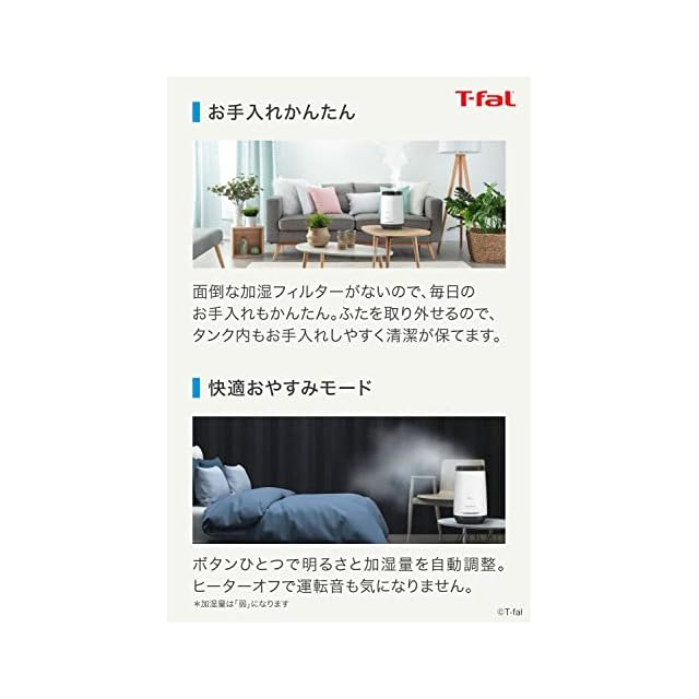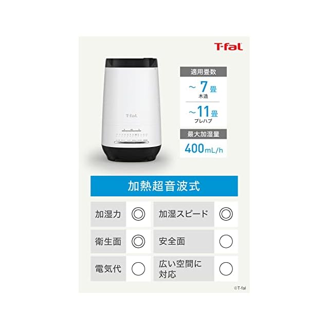 ティファール 加湿器 4L 「加熱超音波式加湿器 スチーム アンド ミスト」 お手入れ簡単 ホワイト HD3040J0