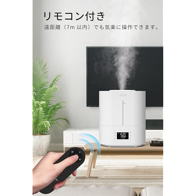 【ASAKUKI】<br> より良い暮らしのために、ASAKUKIはオリジナルでクリエイティブな家庭用製品にフォーカスしています。特にアロマディフューザーと加湿器分野にも十年です。<br> お客様のニーズを満たすために、弊社は最新のテクノロジーを駆使して、革新的で、優れて快適な最高品質の家庭用品を提供いたします。<br><br> 【製品仕様】<br> タンク容量:4L<br> 加湿量:200ml/h<br> 対応面積:18畳<br> 最大使用:約40時間<br> 外形寸法:150x250x293mm<br> 本体質量:約1.19kg<br> 消費電力:約27W<br> 入力電源:AC100~240V 50/60Hz<br> 材質:HIPS、PP<br> 付属品:日本語説明書*1、リモコン*1、クリーニングフィルター*1、ブラシ*1、アロマ用スポンジ*5<br><br> 【製品機能】<br> 「自動湿度調整」湿度センサーを搭載し、環境に応じて運転モードを自動で調整します。いつでも最適な湿度を提供できます。<br> 「超音波式」超音波技術で水をミストに変え、寝室に潤いをもたらします。心地よい湿度が、快適な眠りへと導いてくれます。<br> 「遠隔操作」:付属のリモコンを使えば、最大7メートルの距離から簡単に操作可能。ベッドに寝ながらでも、手軽に調整できます。<br> 「タイマー」1〜12時間のタイマー設定が可能。あなたのライフスタイルに合わせて、自由に運転時間を設定できます。<br> 「静音設計」動作音は35dB以下で、仕事や睡眠を邪魔することはありません。静かな環境を保ちながら、しっかり加湿します。<br> 「睡眠モード」パネルが消灯し、静かに加湿を行います。また、自動湿度調整機能がついており、夜の快適な湿度をキープします。<br> 「空焚き防止」水がなくなると自動で停止するので、安心してご使用いただけます。<br> 「アロマ対応」専用のスポンジにお好きなアロマオイルを加えれば、リラックスできる香りが広がり、癒しの空間を演出します。<br> 「ナイトライト」心地よい電球色のナイトライトが、夜の寝室に温かな雰囲気を添えます。<br> 「お手入れ簡単」シンプルな構造で、給水やお手入れがとても簡単。忙しい方にもぴったりです。<br> 「ミスト量3段階」加湿量は3段階から選べるので、お部屋に必要な湿度をしっかりサポートします。<br> 「おすすめのギフト」操作が簡単でコスパも抜群!家族や友人へのプレゼントとしても最適なアイテムです。