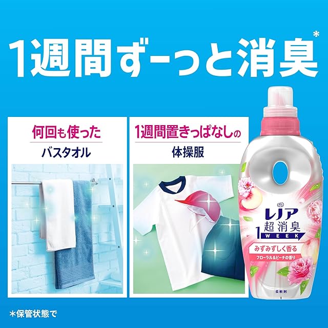 レノア超消臭1WEEKは、80%以上の消費者が実感した、1週間ずーっと続く消臭力(*1)。 かけっぱなしの洗面所のタオルや、ニオイが気になるけれど毎日は洗えない、シーツや枕カバーまで、1週間ずーっと爽やか(*1)。 *1 保管状態で