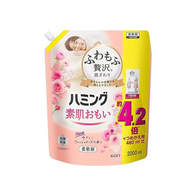 ハミング 【大容量】素肌おもい 柔軟剤 ふわもふ贅沢な肌ざわり・No.1のやわらかさ フレッシュローズの香り 詰替え用 2000ml