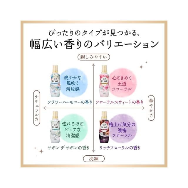 最高級アロマバランスで美しい香り続く、ダイヤモンドアロマ製法。(当社柔軟剤内)