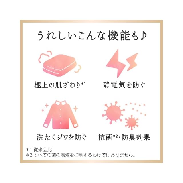 極上の肌ざわり(従来品比)。静電気、洗たくジワも防ぐ