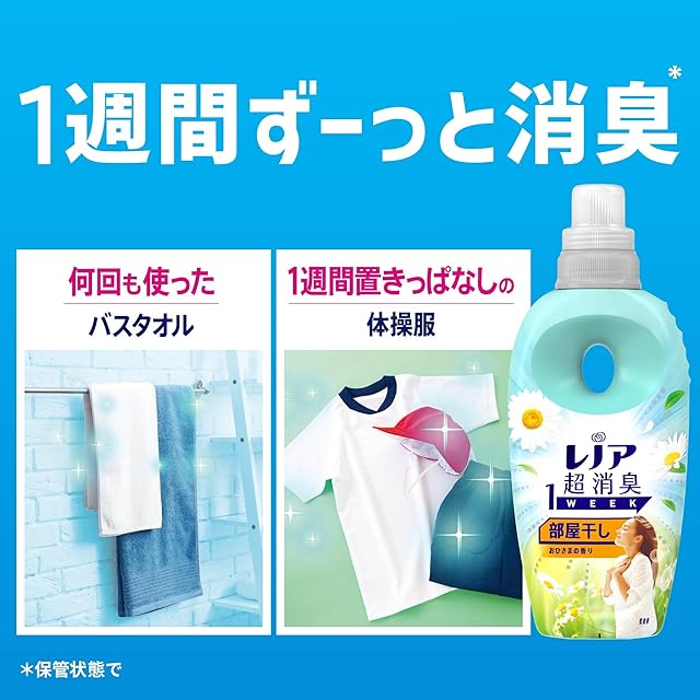 新しくなったレノア超消臭1WEEKは、洗濯製品初(*1)の成分を配合。服についた体臭もニオイも0へ(*2) *1 P&G製品内 *2 柔軟剤未使用と比較。すべてのニオイを0にするわけではありません。
