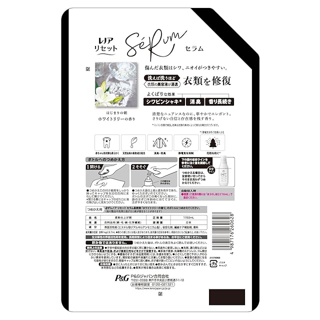 商品名:レノア リセット セラム 柔軟剤 ホワイトリリー 詰め替え 1,150mL [大容量]